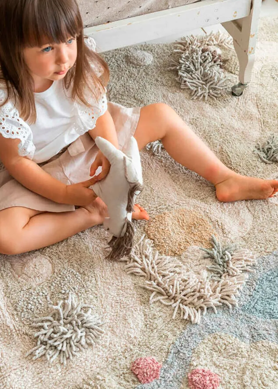 Der waschbare Spielteppich Path Of Nature von ist ein schöner und praktischer Spielteppich für Kinder. Der Teppich ist eine tolle Möglichkeit, die Natur in Ihr Zuhause zu bringen. Das Produkt ist Teil der Cotton Woods Serie.