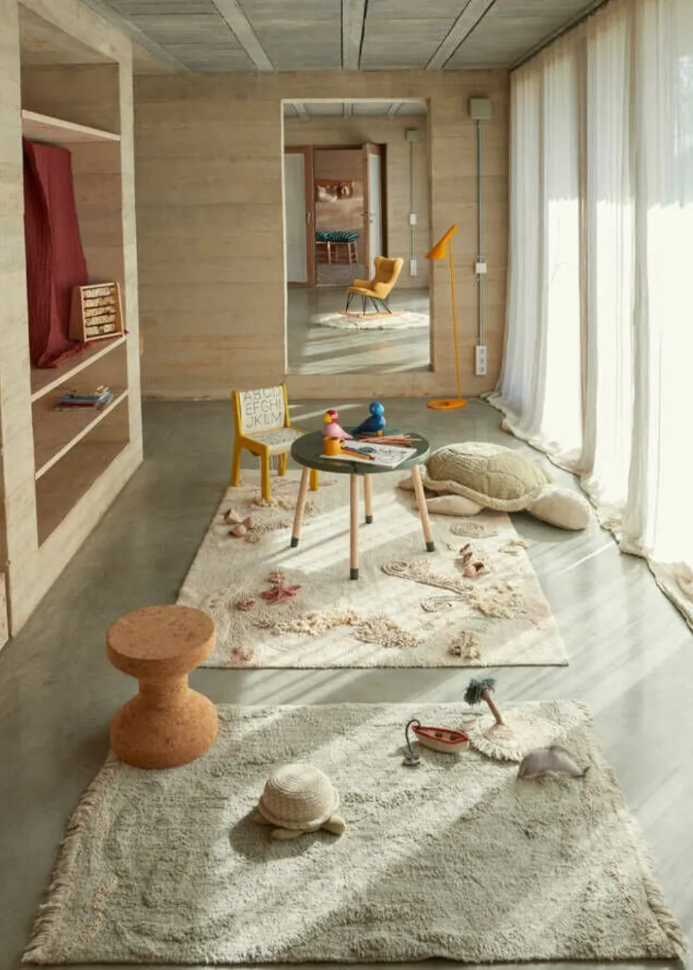 Wer sagt, dass man die Natur nicht als Teppich verwenden kann? Dieser Teppich von ist nicht nur schön anzusehen, sondern macht auch Spaß beim Spielen. Kinder können mit dem Teppich ihr eigenes Meer erschaffen und in den Wellen der Natur herumschwimmen.