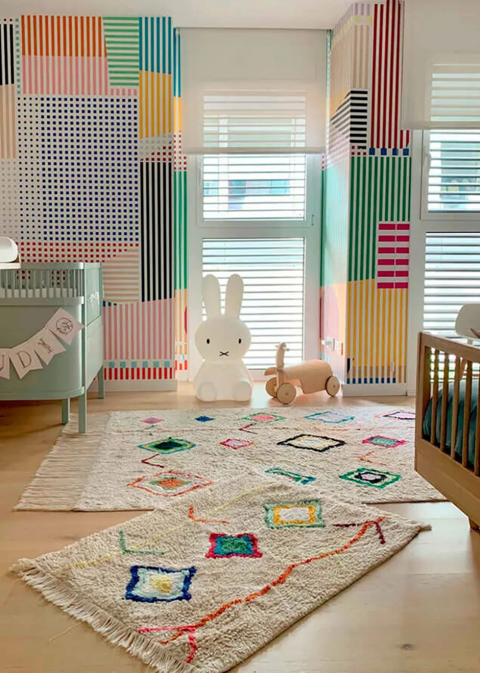 Der waschbare Teppich Mini Kaarol von ist eine stilvolle und praktische Ergänzung für jedes Zuhause. Als Teil der Mini Ones-Reihe ist der Kinderteppich eine Mini-Version des schönen Kaarol-Teppichs und eignet sich daher perfekt für das Kinderzimmer. Mit seinem schönen, mehrfarbigen geometrischen Muster verleiht der Teppich dem Raum einen Hauch von Eleganz und anspruchsvollem Stil. Die weiche Textur und die hochwertige Verarbeitung machen ihn zu einer perfekten Wahl für vielbeschäftigte Haushalte mit Kindern und Haustieren.