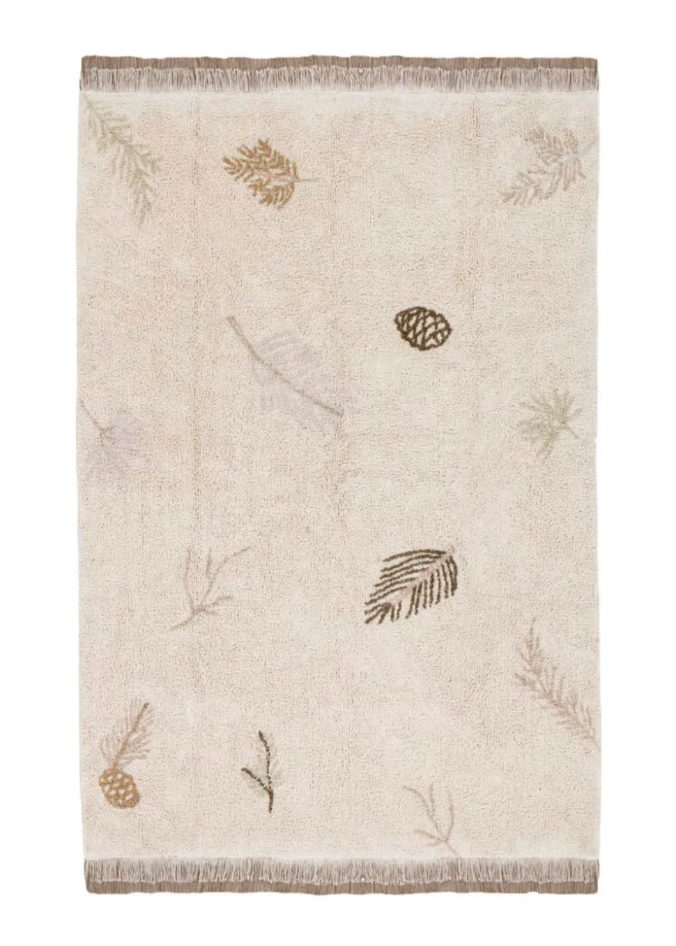 Der waschbare Teppich Pine Forest von ist ein wunderschöner Teppich. Die weichen, handgewebten Baumwollfasern und das natürliche Kiefernwaldmotiv des Teppichs schaffen eine beruhigende Atmosphäre in jedem Raum. Die sorgfältig ausgewählte Farbpalette aus Grün- und Blautönen verleiht dem Teppich ein authentisches und realistisches Aussehen.