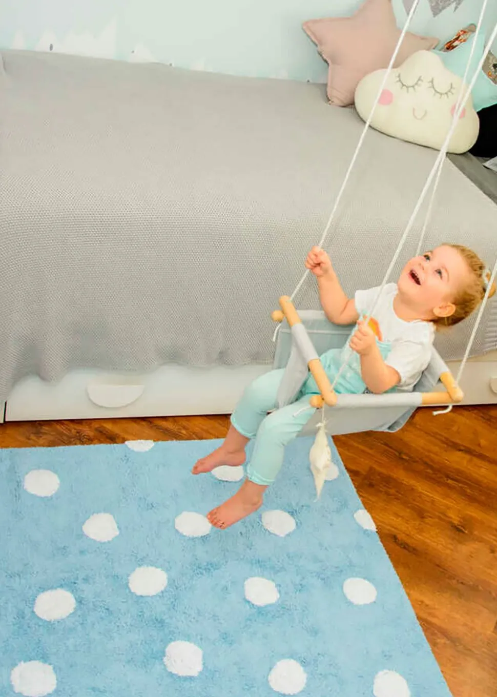 Das Beste daran ist, dass der Teppich waschbar ist, so dass Sie ihn sauber und frisch halten können, egal wie viel Ihre energiegeladenen Kleinen auf ihm herumtollen! Der Teppich ist Teil der Polka-Serie.