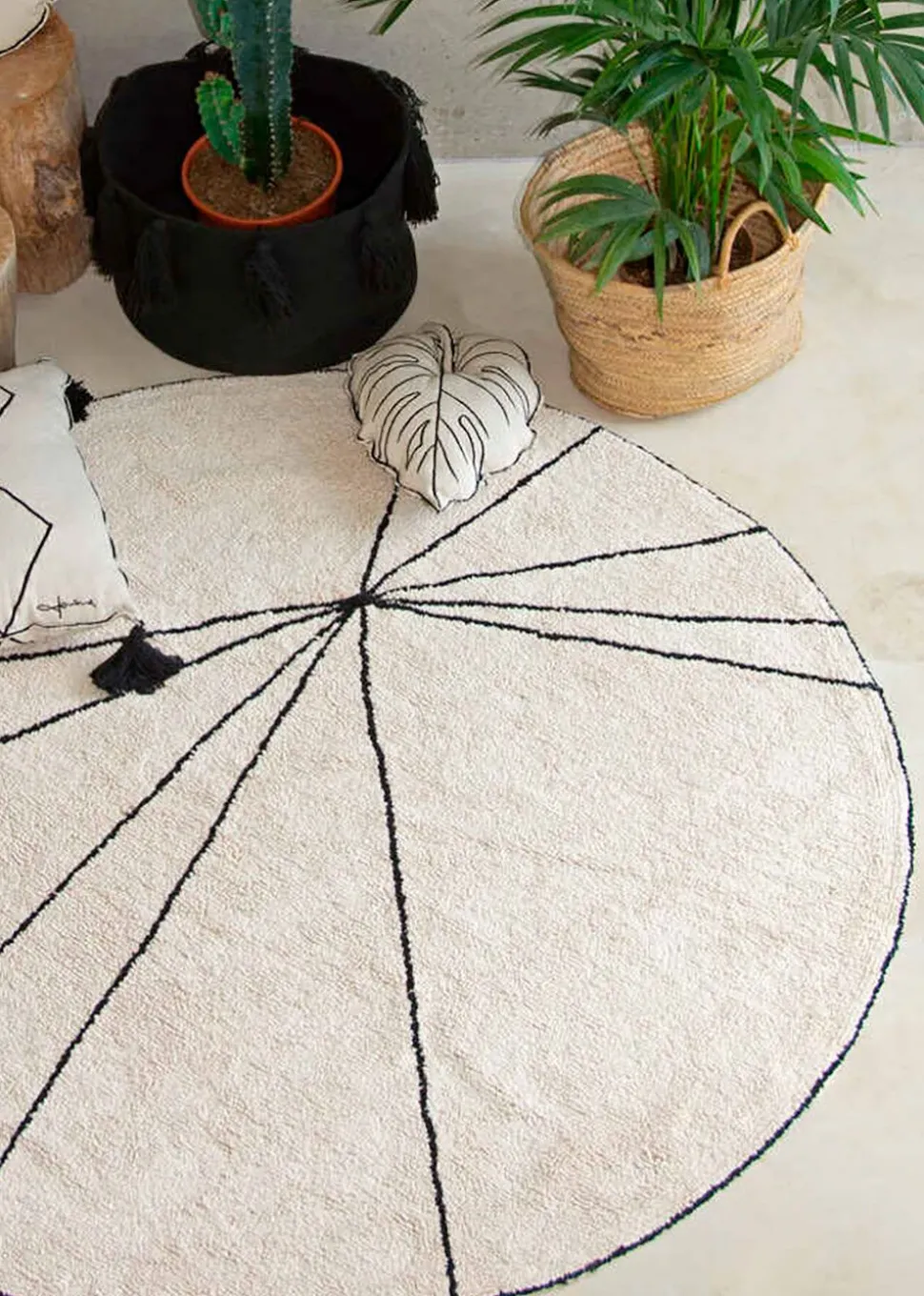 Der waschbare Teppich Trace von ist ein schöner geometrischer Teppich. Der Teppich ist sowohl stilvoll als auch funktional. Mit seinem skandinavischen Design passt er perfekt in ein minimalistisches Interieur. Die runde Form und die weichen Materialien machen ihn ideal für ein Jugendzimmer oder um ein farbenfrohes Kinderzimmer aufzulockern.