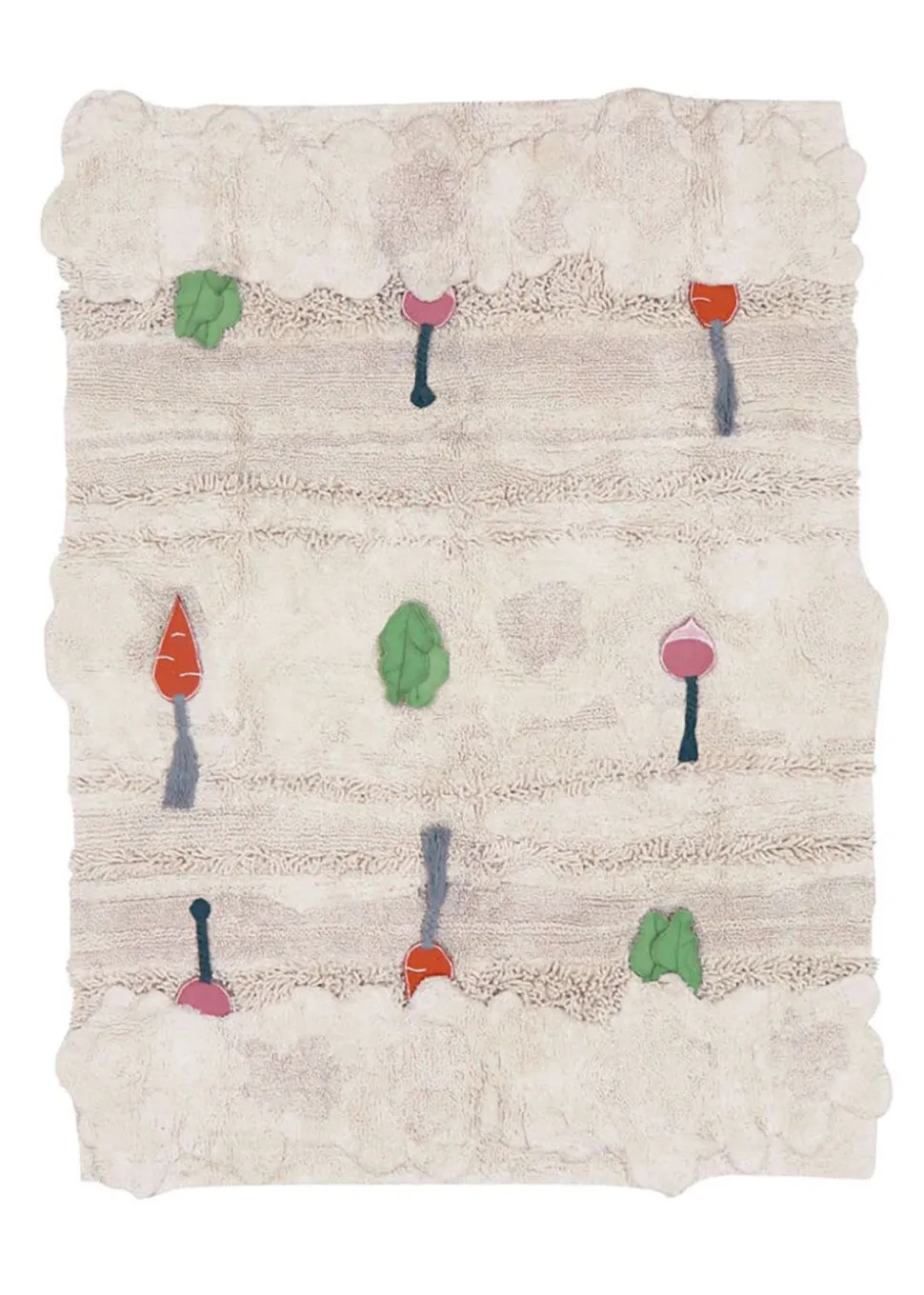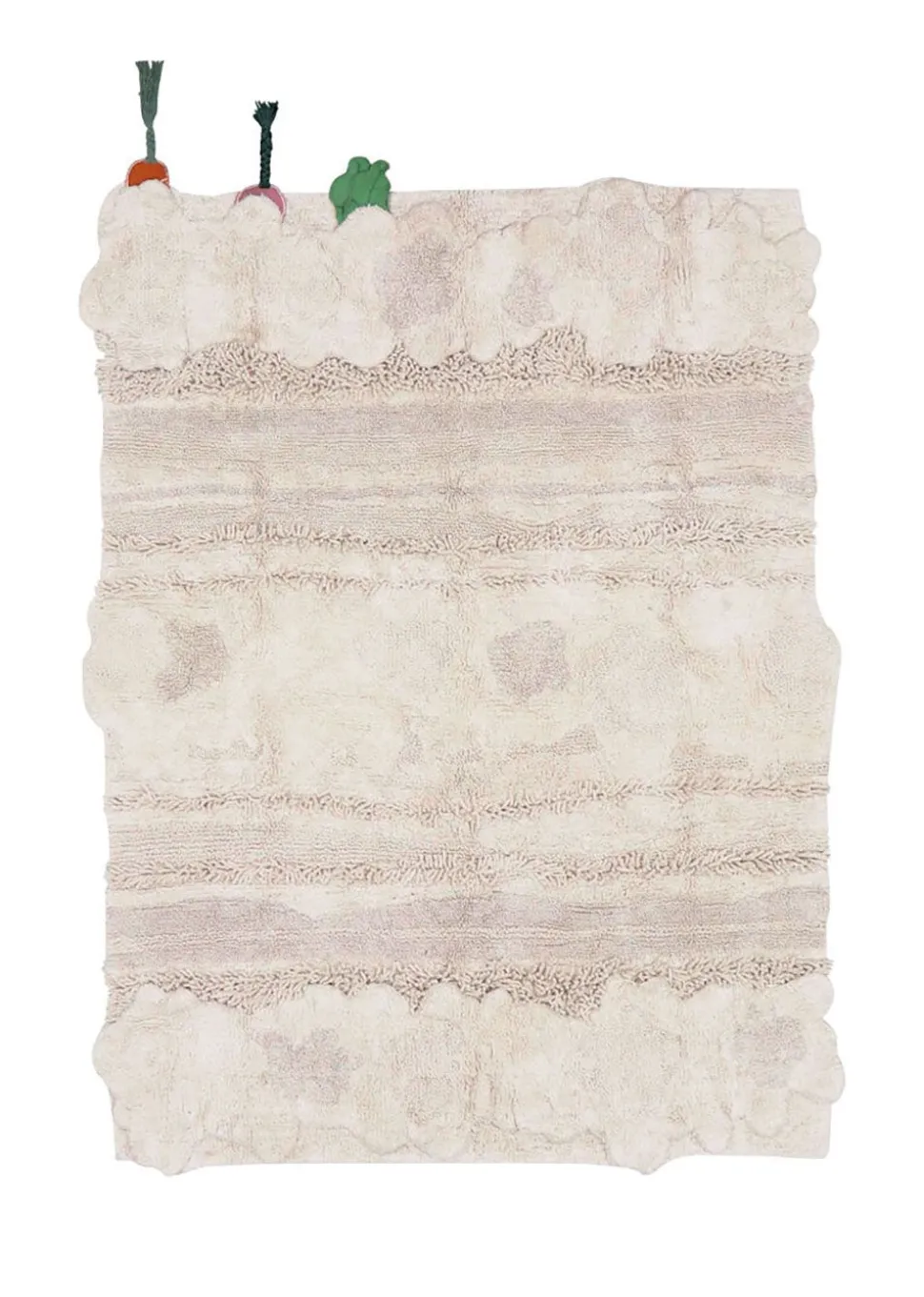Der waschbare Teppich Veggie Garden von ermöglicht es dem Kind, im Garten zu spielen, ohne sich schmutzig zu machen. Als Teil der Oli&Carol-Reihe ist der Teppich multifunktional, da er sowohl als normaler weicher Teppich als auch als lustige Spielmatte funktioniert.