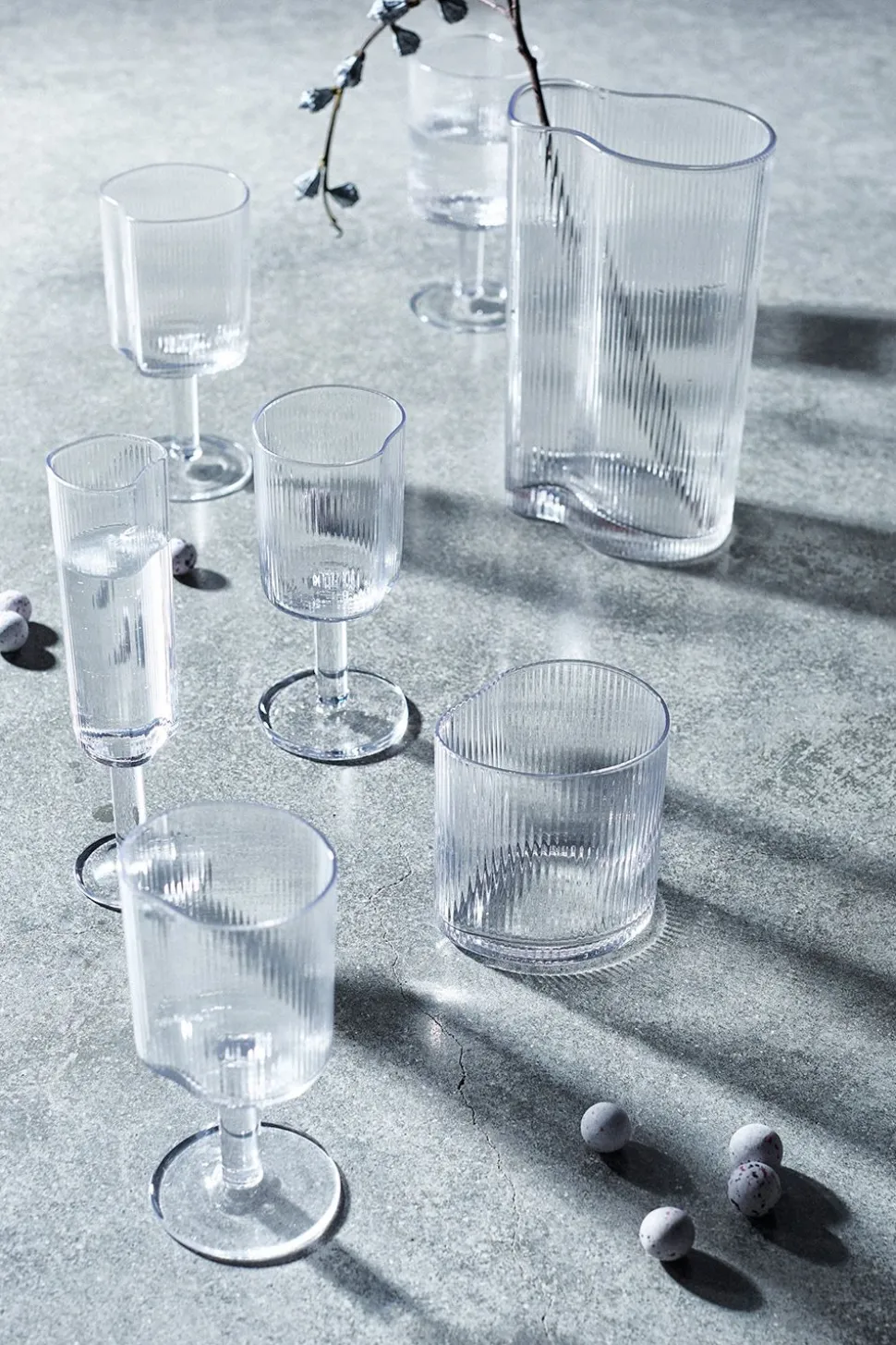 Die Wasserkaraffe Ripe wird von hergestellt. Die Karaffe wird aus geriffeltem Glas hergestellt. Ripe Wasserkaraffe hat ein schönes Design, einzigartige Form und eine gerippte Oberfläche. Die Wasserkaraffe Ripe kann auch als Vase mit feinen Blumen darin verwendet werden.