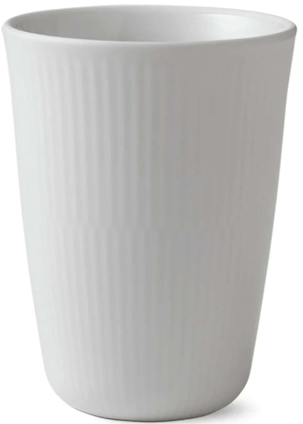 Die Tassen sind von hergestellt und gehören zur Serie „Weiß Gerippt“. Die Tassen haben Größen von 26 cl bis 39 cl. Die Tassen sind aus Porzellan gefertigt und halten alle der Spülmaschine und der Mikrowelle stand.