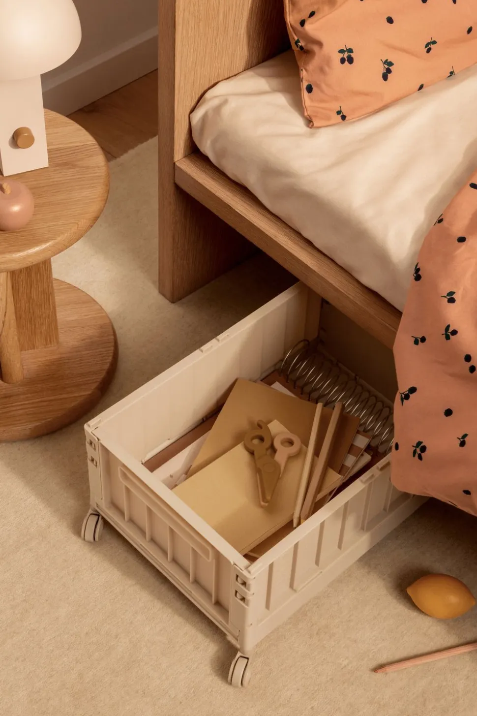 Die Weston Aufbewahrungsbox Medium mit Rädern von ist sowohl funktional als auch stilvoll, um Ordnung und Freude ins Kinderzimmer zu bringen. Sie besteht zu 60% aus leichtem und haltbarem recyceltem PP, hat eine moderne Farbe und ein praktisches Design, das die Aufbewahrung von Spielzeug, Büchern und kleinen Gegenständen erleichtert. Die farbenfrohen Räder lassen sich um 360° drehen, wodurch die Aufbewahrungsbox spielerisch und mit viel Spaß bewegt werden kann.