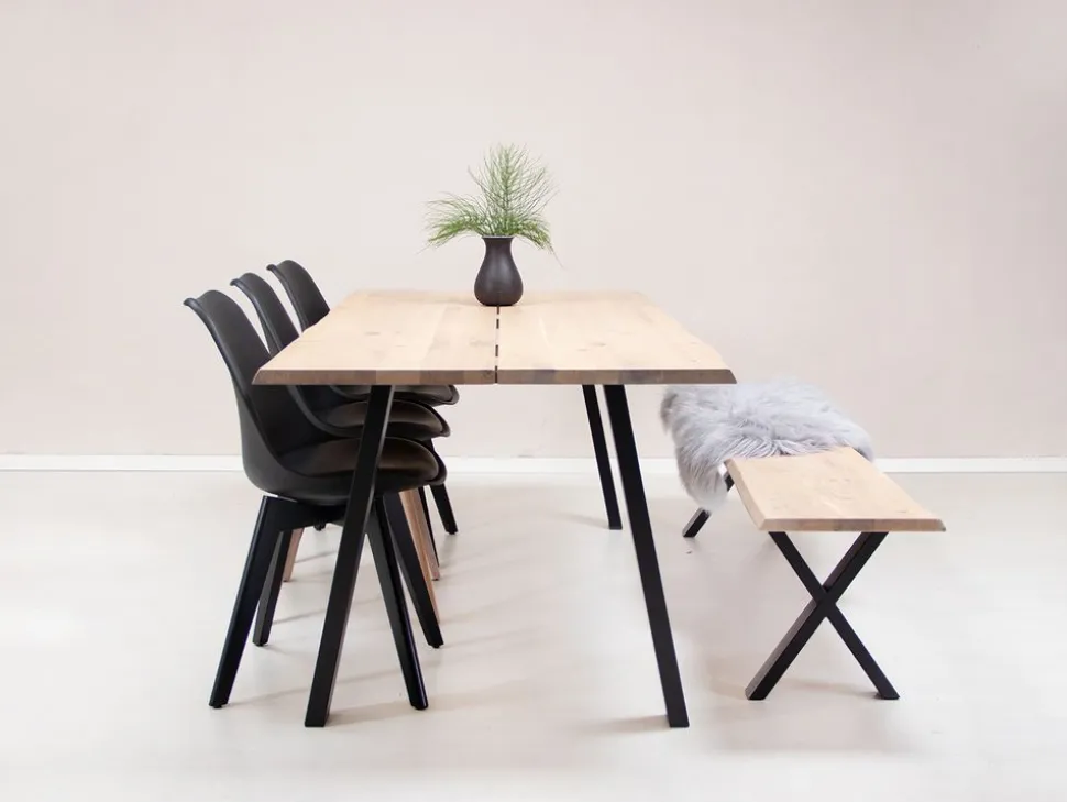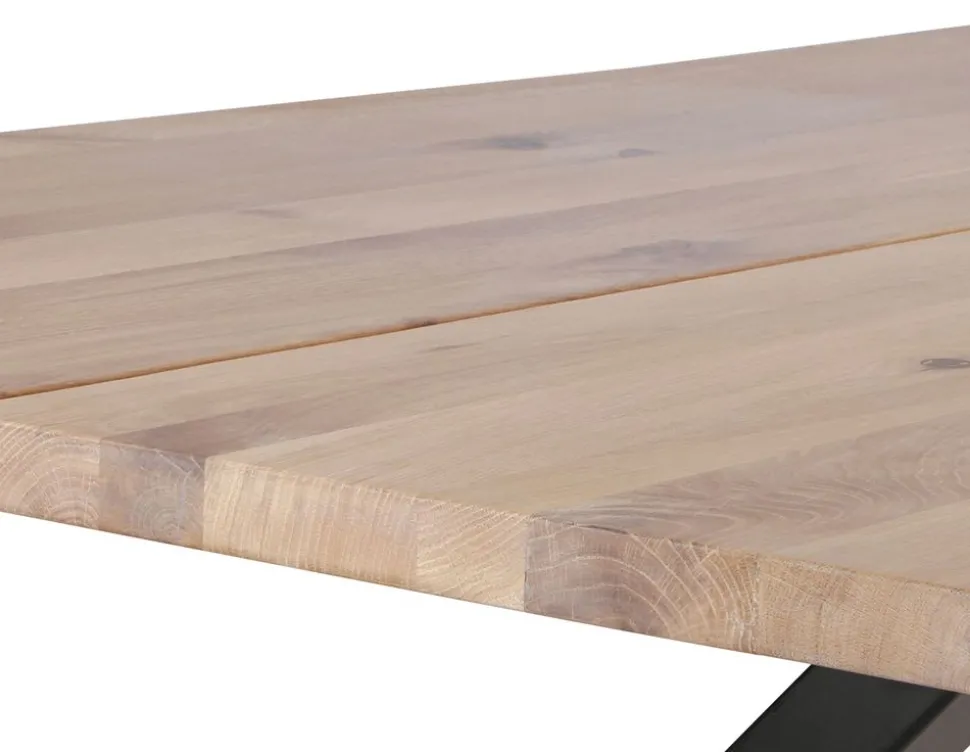 Schöne Eichenplanken Esstischplatten. Das feine Eichenholz ist mit Weißöl lackiert. Bitte beachten Sie, dass die Tischplatten und Beine separat verkauft werden. Der raue Look der Tischplatte passt in viele Wohnungen als schöner Esstisch.