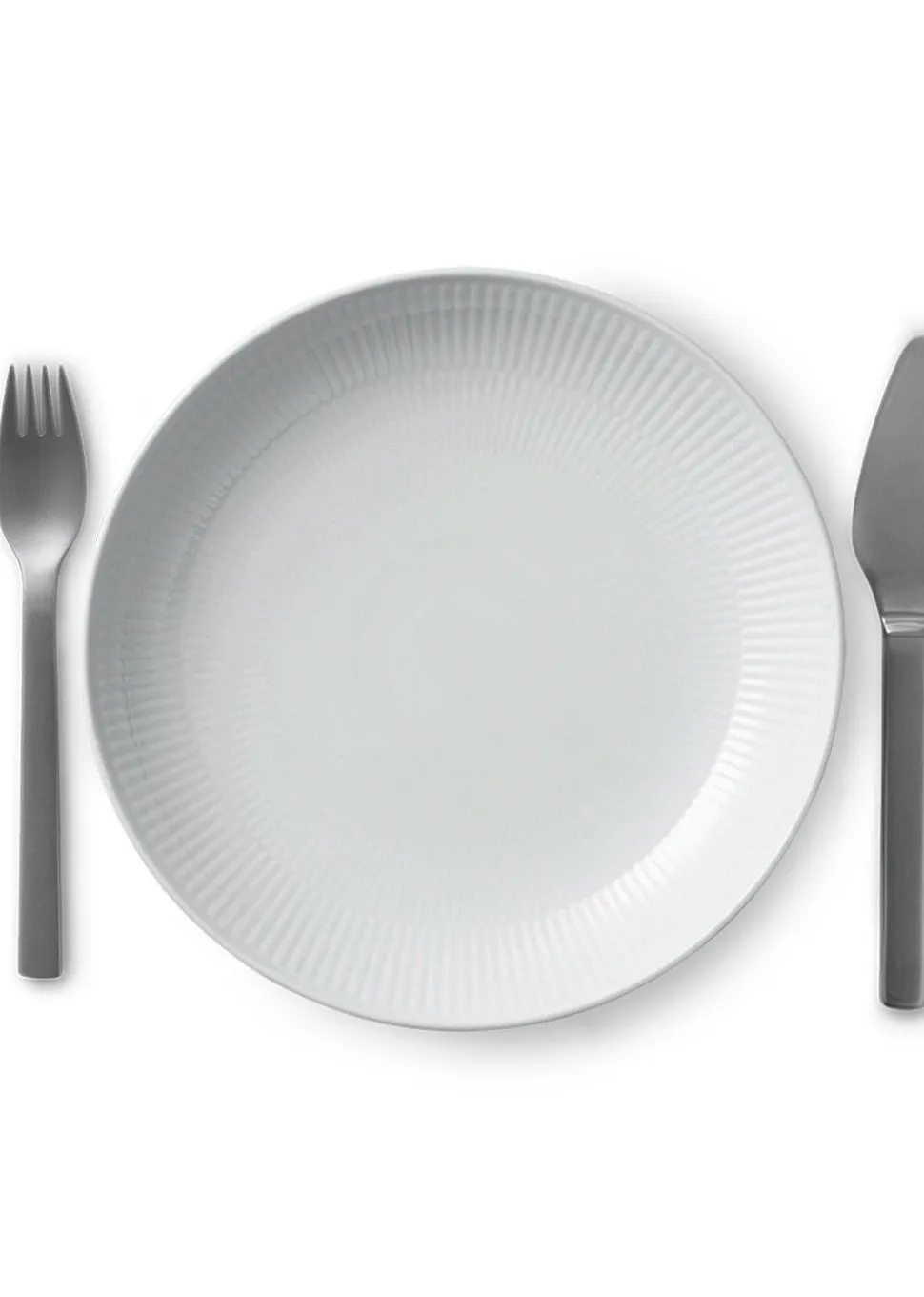 Modernes Essgeschirr von in der Serie „White Ribbed“, hergestellt aus weißem Porzellan in einer schönen gerippten Kante, „White Riflet“ ist seit seiner Entstehung ein beliebter Rahmen in vielen dänischen Häusern und lässt sich mit seinem einfachen Design leicht mit vielen anderen Rahmen von kombinieren.