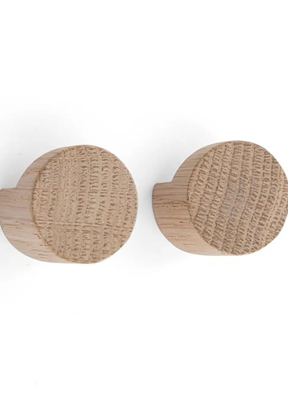 Der Holzknoten Small wird von hergestellt. Die Knöpfe haben ein einfaches Design und sind mit einer 8 mm tiefen Einkerbung versehen, damit Handtücher und Geschirrtücher nicht abrutschen können. Wood Knot Small wird aus nordischer Eiche hergestellt und ist in verschiedenen Größen und Ausführungen erhältlich.