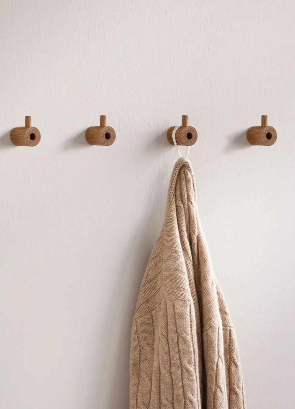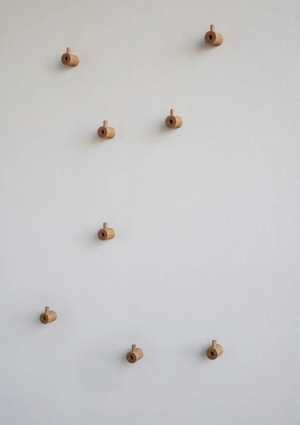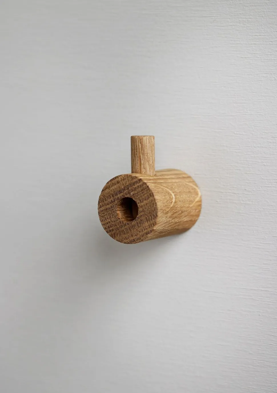 Der schlichte Wandhaken aus Holz wird von Moebe hergestellt. Der Haken ist aus massivem Eichenholz gefertigt, was dem Haken ein schlichtes und sauberes Aussehen verleiht. Der hölzerne Wandhaken wird einfach an der Wand befestigt. Der Haken ist ideal für eine Eingangshalle und kann allein oder mit anderen Haken aufgehängt werden.