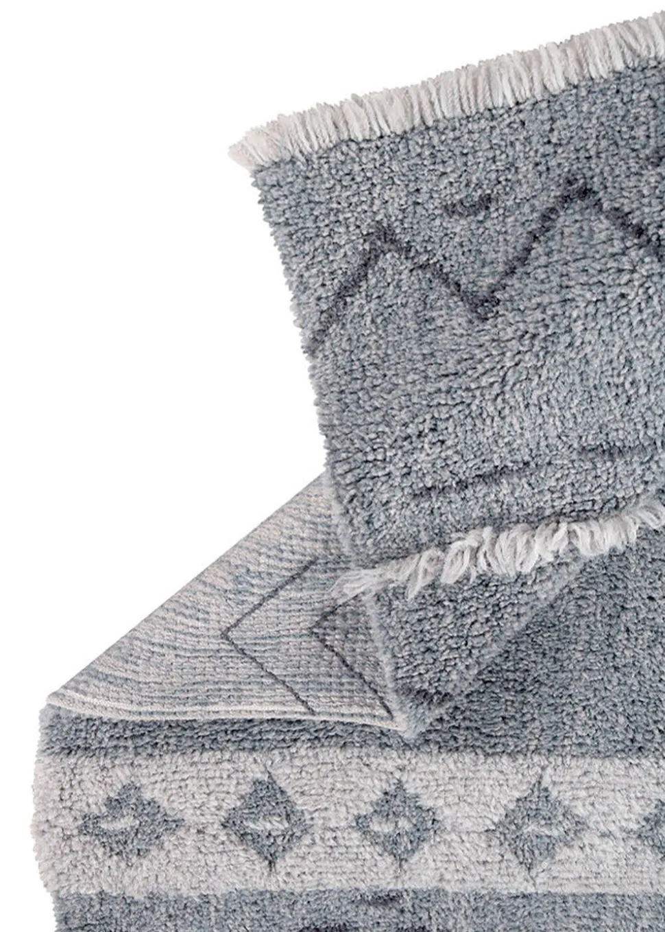 - Pflegehinweise: Der Teppich ist bei 30 Grad in der Maschine waschbar. Da der Teppich aus Naturfasern besteht, kann es vor allem nach den ersten paar Wäschen zu einem leichten Ausfransen kommen. Dieser Vorgang lässt mit der Zeit nach, wenn der Teppich mit dem Staubsauger abgesaugt wird (immer auf niedriger bis mittlerer Saugstufe).