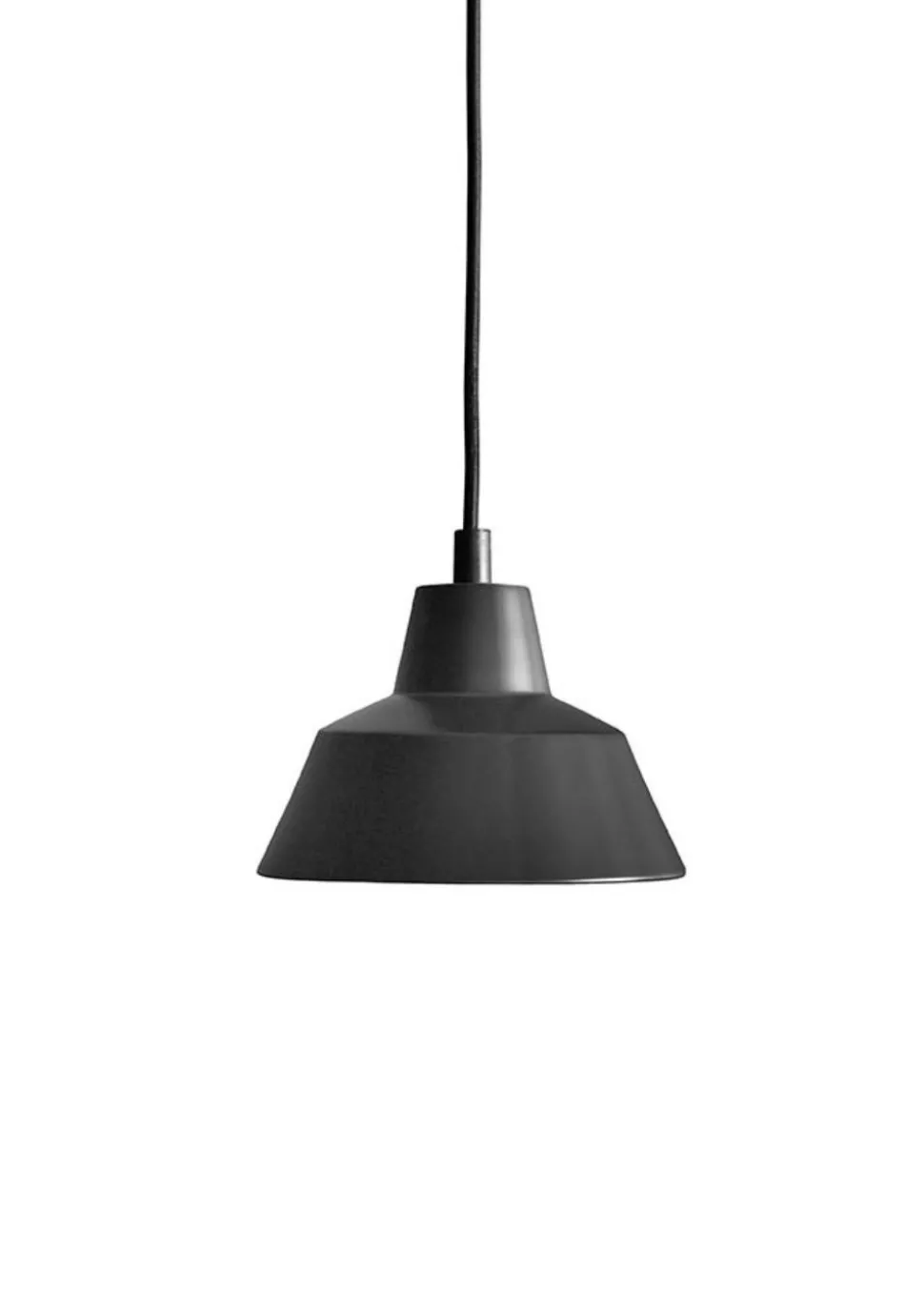 Die klassische original dänische Werkstattlampe ist von A. Wedel-Madsen entworfen. In Stil, Ausdruck und Funktion verbindet die Werkstattlampe moderne und zeitgenössische Designwerte. In den 1950er Jahren diente die „Werkstattlampe“ dazu, den Handwerkern in der Werkstatt das nötige Licht zu geben – leidenschaftlich und sehr stolz auf ihr tiefes Verständnis von Materialien, Techniken und großer Liebe zum Detail.