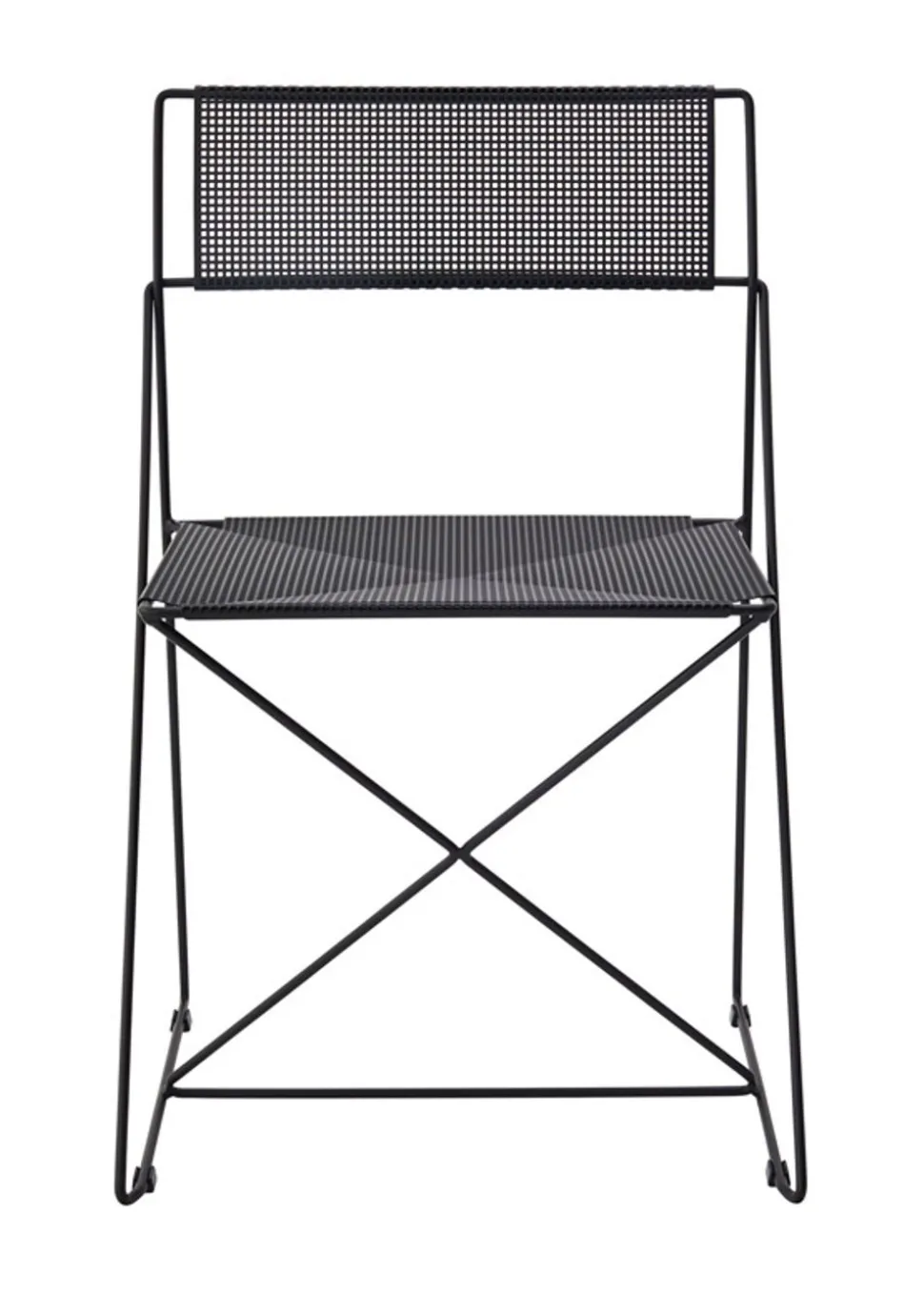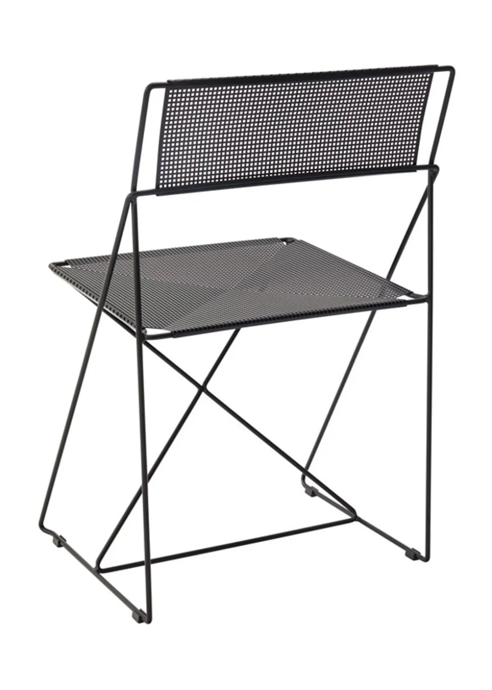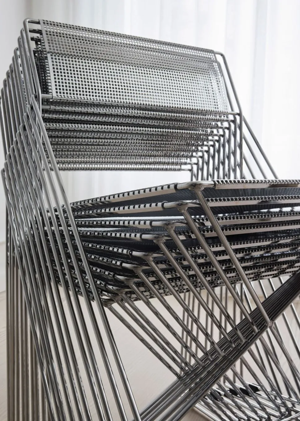 Der X-Line Stuhl ist eine Design-Ikone. Der Stuhl wurde 1977 von dem dänischen Architekten Niels Jørgen Haugesen entworfen. Der Name rührt daher, dass die X-Form im Mittelpunkt des Designs steht und dazu beiträgt, die Funktion, Stabilität und Haltbarkeit des Stuhls zu verbessern. Die farbigen Stühle sind pulverbeschichtet und daher für den Außeneinsatz geeignet. Wenn die Stühle gelagert oder transportiert werden müssen, können sie papierdünn 9,5 mm gestapelt werden: 12 Stück auf dem Boden oder 40 Stück auf einem Wagen.