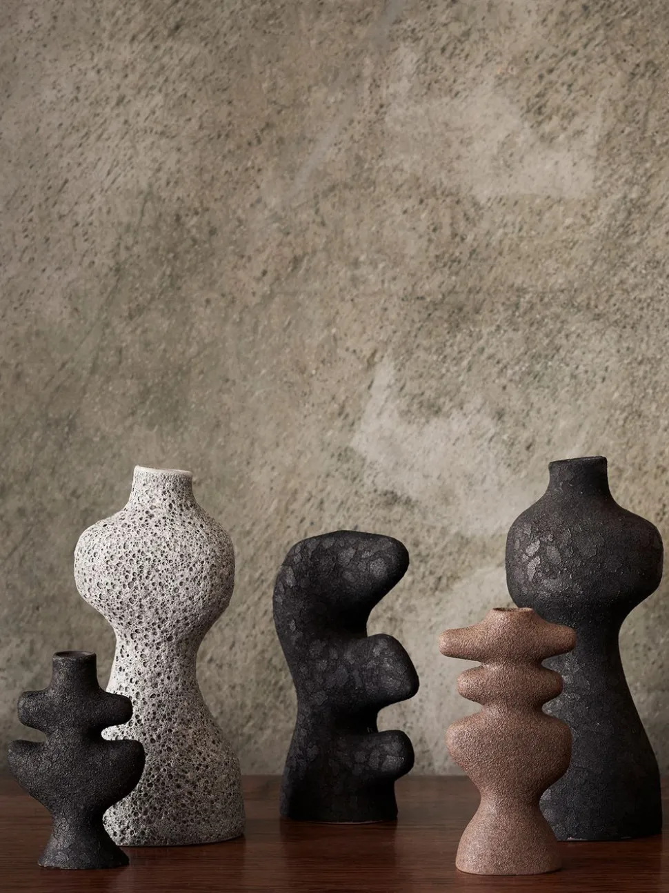 Die Vasen von Yara kombinieren erdige Farben und raue Texturen zu einem organischen Look. Jedes Stück ist aus Keramik gefertigt und mit einer reaktiven Glasur überzogen, die für ein einzigartiges und abwechslungsreiches Aussehen sorgt. Sie können einzeln ausgestellt oder mit anderen Stücken aus der Yara-Kollektion kombiniert werden, um ein harmonisches und doch kontrastreiches Bild zu schaffen.