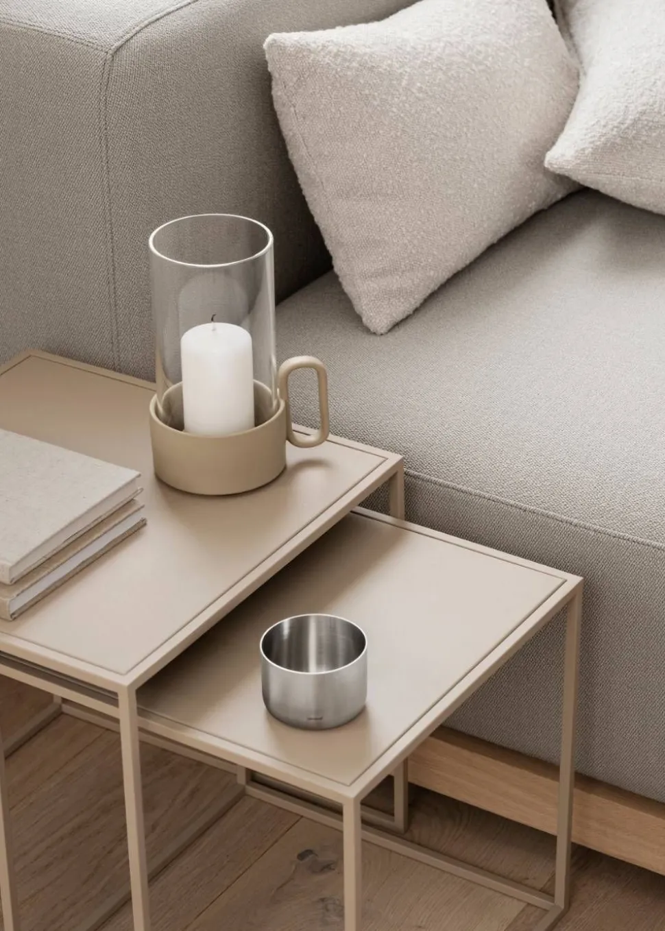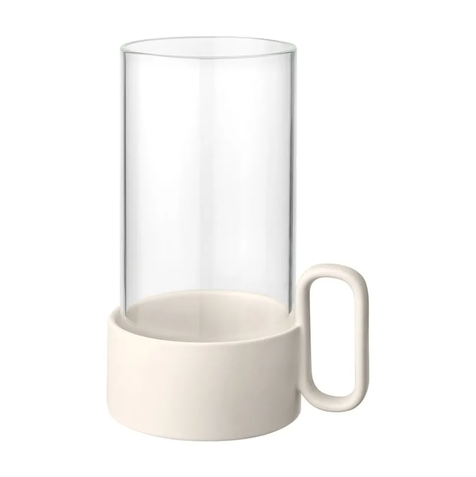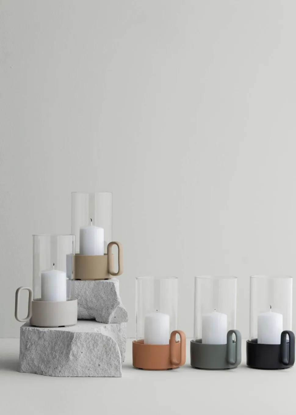 Die Laterne Yuragi wurde von dem japanischen Designer Kazushige Miyake entworfen. Die Laterne ist eine schlichte, funktionelle und moderne Version der klassischen Hurricane-Lampe. Sie besteht aus einem Keramiksockel und einem Glaszylinder, der das brennende Licht schützt. Das Design ist auch funktional, denn es gibt einen Griff.